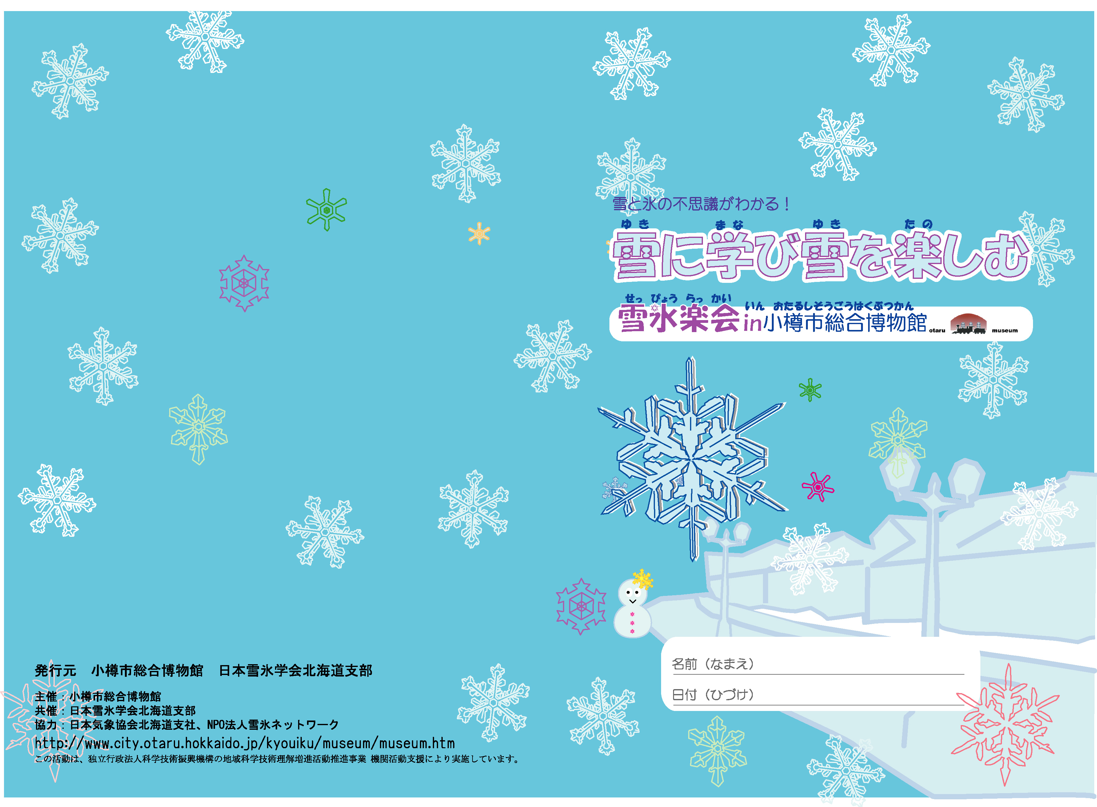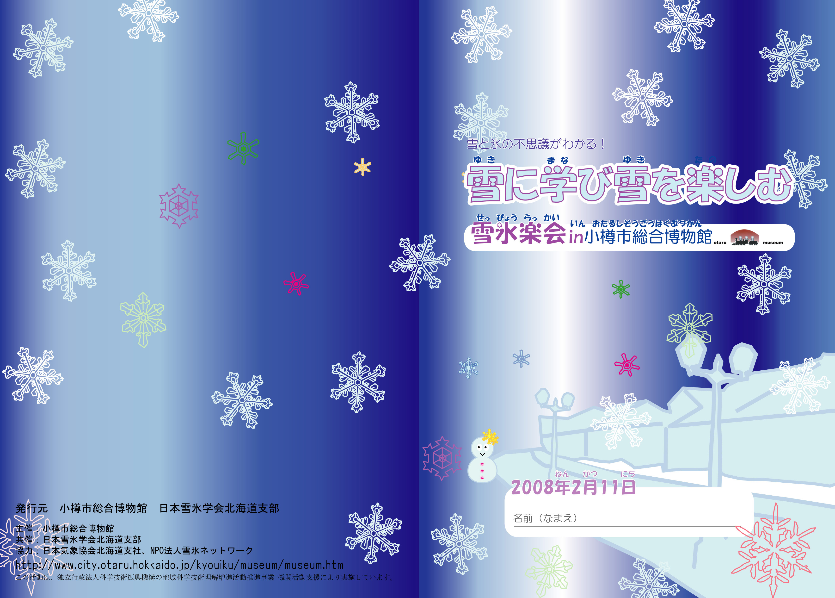 子供達に親しんでもらえるようなデザインを心がけました。デザインで使用した雪の結晶のイラストは実際の雪の結晶の写真を参考に描きました。