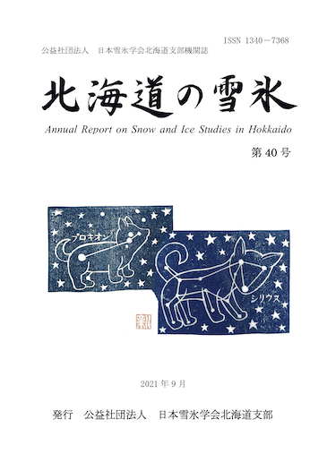 | 3 | 2020-2021 年冬期に大雪に見舞われた岩見沢の積雪と降雪の特徴 | 尾関 俊浩(北海道教育大学札幌校),金田 安弘(北海道開発技術センター),松岡 直基(株式会社北海道気象技術センター) | 11 | |