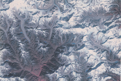 <エベレスト付近の氷河群> SPOT人工衛星画像, 1995年(写真提供:山田知充会員) |