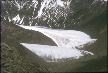 <東シベリアの氷河> 東シベリア・スンタルハイアタ山脈のNo.31氷河(2001年8月) (写真提供:山田知充会員) |