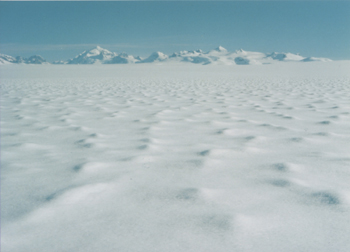 <パタゴニア北氷陸> 激しい融解によってパタゴニア北氷陸一面に形成された雪えくぼ(1985年12月) (写真提供:山田知充会員) |