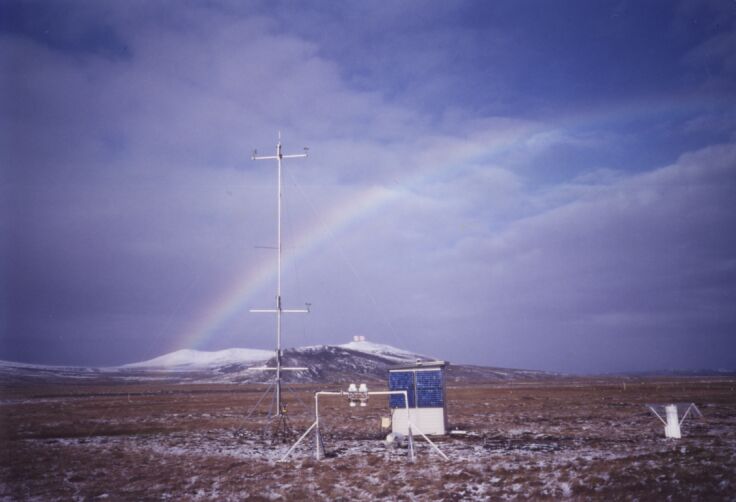 <雪面上での放射観測>![]() 右側:波長別放射計、 左側:放射収支計と全天日射計 (札幌・低温研北側裏の露場にて) (写真提供:石川信敬会員) |