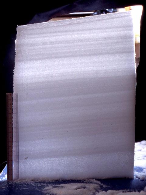 | <積雪層構造のアニリン薄片写真> (写真縦方向が約1cm) ![]() |